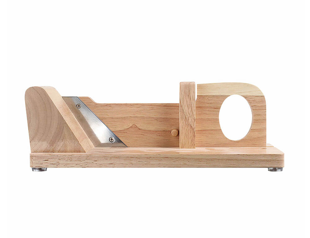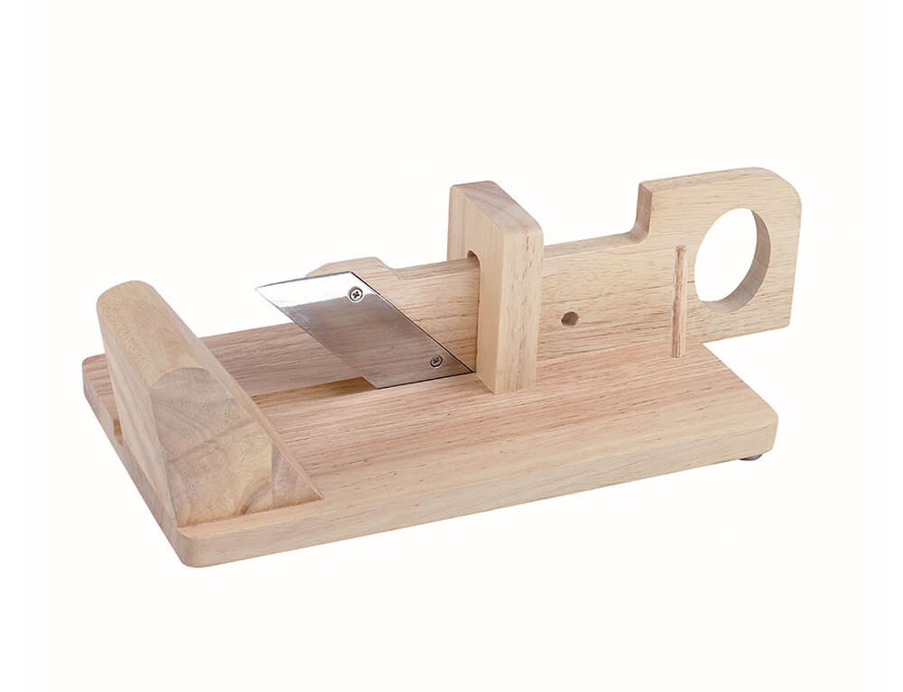 Γκιλοτίνα κοπής αλλαντικών Livoo MEC125 με λαβή για να μπορείτε να κόβετε με μεγάλη ευκολία τα αλλαντικά σας. Είναι κατασκευασμένη από ξύλο καουτσούκ για μεγαλύτερη ανθεκτικότητα.