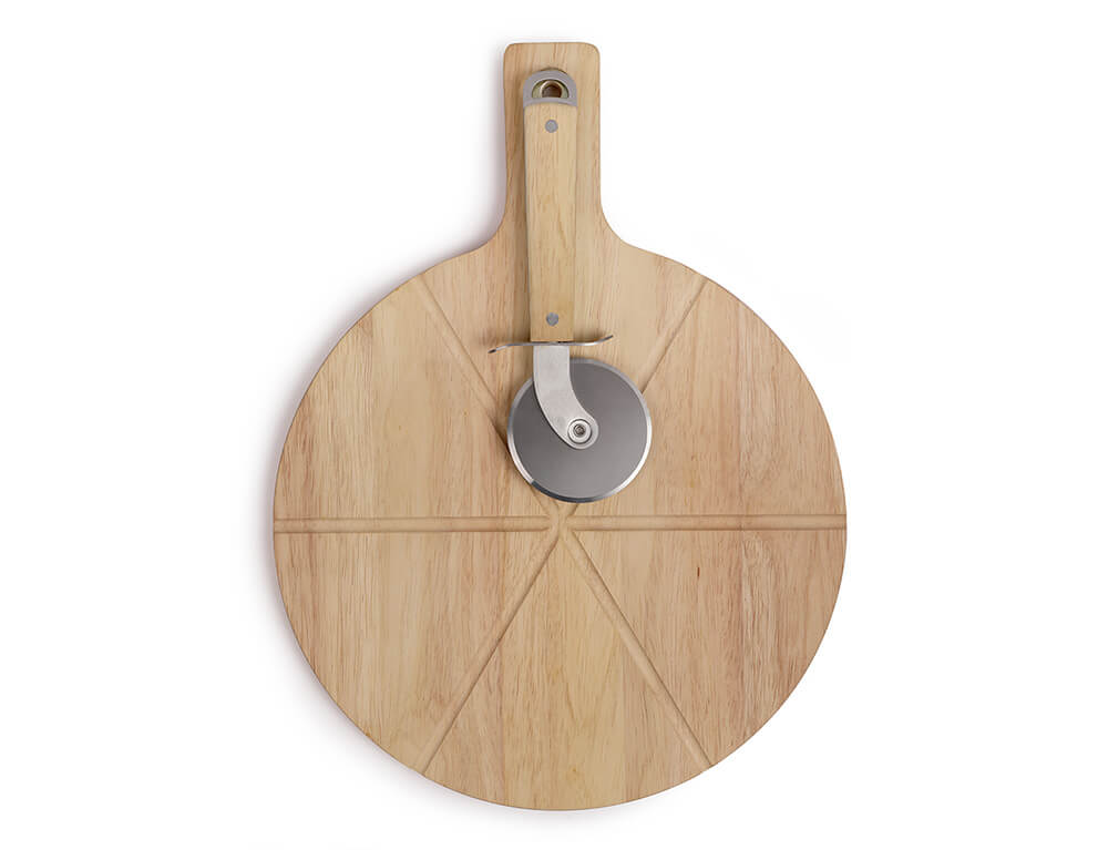 Σετ επιφάνεια κοπής και ρόδα για πίτσα από τη Livoo, για να μπορείτε να κόψετε και να σερβίρετε πίτσα με άνεση. Πάνω στην ξύλινη επιφάνεια μπορείτε να κόψετε την πίτσα σε κομμάτια και να τη σερβίρετε απευθείας. Η κοπή της πίτσας είναι πολύ εύκολη, χάρη στον κόφτη πίτσας που περιλαμβάνει το σετ. Όταν δεν το χρησιμοποιείτε, μπορείτε να κρεμάσετε χάρη στην εγκοπή στη λαβή που διαθέτει.