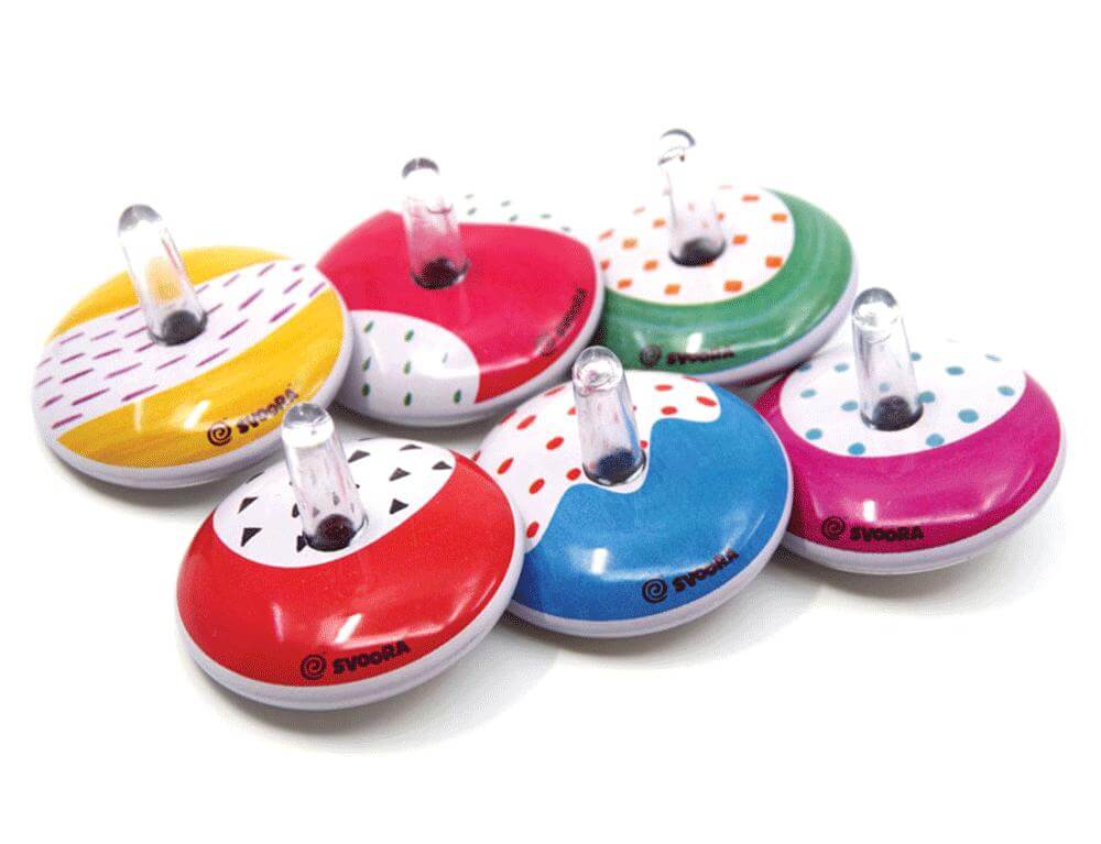 Ρετρό τσίγκινες σβούρες σε 6 διαφορετικά σχέδια από την εταιρεία Svoora. Κλασσικό παιχνίδι που θα κάνει τους μεγαλύτερους να αναπολήσουν και τους νεότερους να μάθουν. Η τιμή ισχύει ανα τεμάχιο. Διαστάσεις προϊόντος: 4,3 x 3,5 x 4,3 εκατοστά.