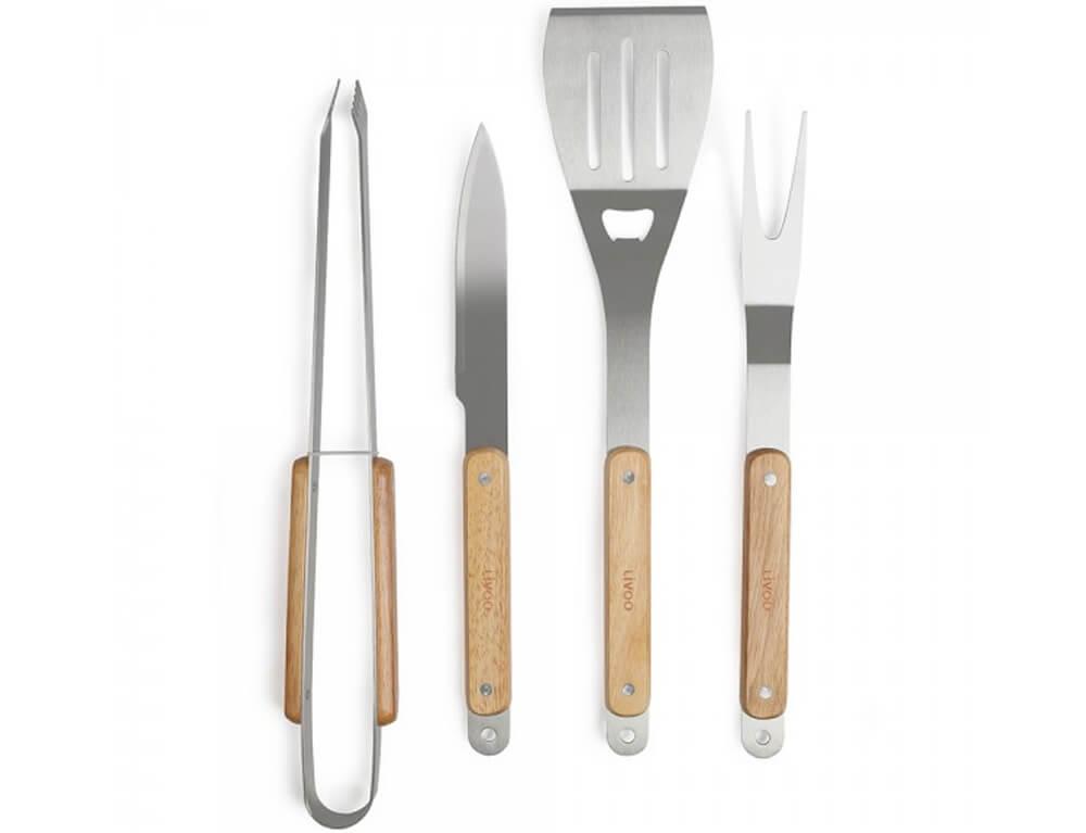 - 4 αξεσουάρ: πιρούνι, λαβίδες, σπάτουλα και μαχαίρι