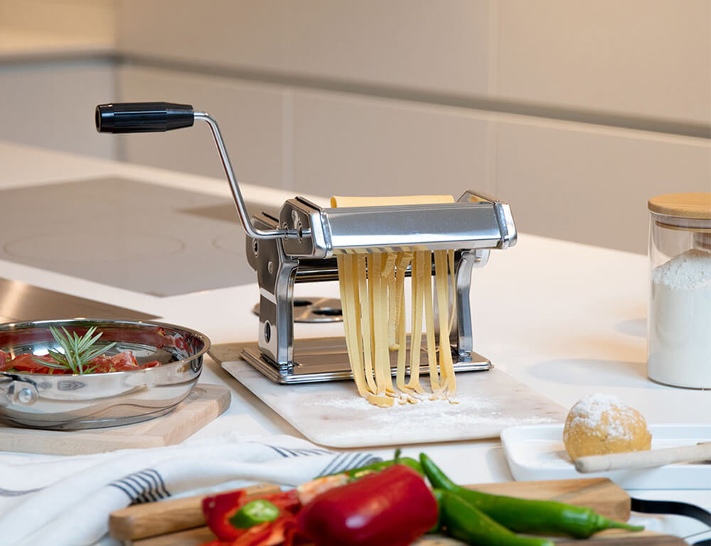 - Με πλάστη 9 θέσεων 6 έως 1 mm για φετουτσίνι, σπαγγέτι, λαζάνια, ραβιόλια