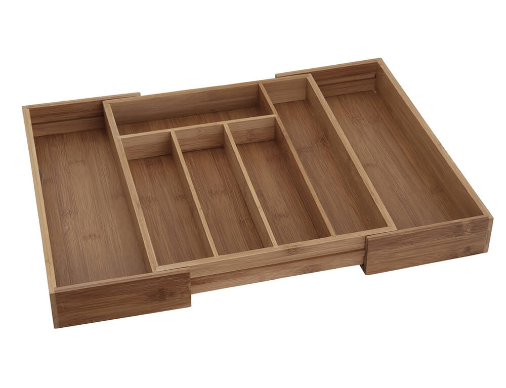 Κατασκευασμένο από μπαμπού, είναι ανθεκτικό, ελαφρύ και καθαρίζεται εύκολα. Εάν οι 5 θήκες που παρέχουν άφθονο χώρο για τα μαχαιροπίρουνα και τα σκεύη σας δεν επαρκούν, το κουτί μαχαιροπήρουνων μπορεί να επεκταθεί δίνοντάς σας 2 επιπλέον θήκες για τεράστιο χώρο αποθήκευσης.