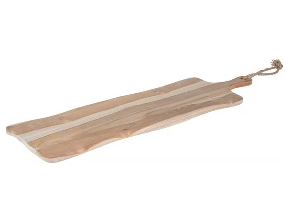 Η λαβή κάνει το ξύλο κοπής εύκολο στη χρήση και το όμορφο κορδόνι που κρέμεται το καθιστά ιδανική για τη διακόσμηση του τοίχου της κουζίνας σας. Αν και το ξύλο είναι πολύ ανθεκτικό και μακράς διαρκείας, δεν πλένεται στο πλυντήριο πιάτων.