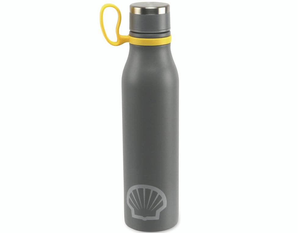 Το Iσοθερμικό στεγανό μπουκάλι SHELL 170710760, είναι κατασκευασμένο από ανοξείδωτο χάλυβα, κατάλληλο για συντήρηση κάθε ροφήματος. Το σφιχτό κλείσιμο, διατηρεί αξιόπιστα θερμό το περιεχόμενο στη φιάλη για 6 ώρες περίπου.