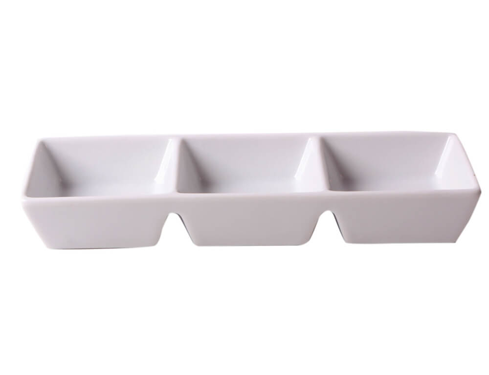 Μπολ για σνακ χωρισμένο σε τρεις θέσεις σερβιρίσματος. Το συνολικό μήκος του μπολ είναι 21 cm. Το μπολ είναι κατασκευασμένο από λευκή πορσελάνη υψηλής ποιότητας. Mπορεί να χρησιμοποιηθεί ως μπολ για μικρά σνακ, π.χ. ξηρούς καρπούς, αποξηραμένα φρούτα. Ιδανικό για πάρτι, γιατί τα σνακ δεν αναμειγνύονται στο πιάτο, αλλά χωρίζονται σωστά. Μπορούμε επίσης να το χρησιμοποιήσουμε για να σερβίρουμε ντιπ χωρίς να ανησυχούμε για την ανάμειξή τους. Το μπολ πλένεται στο πλυντήριο πιάτων.