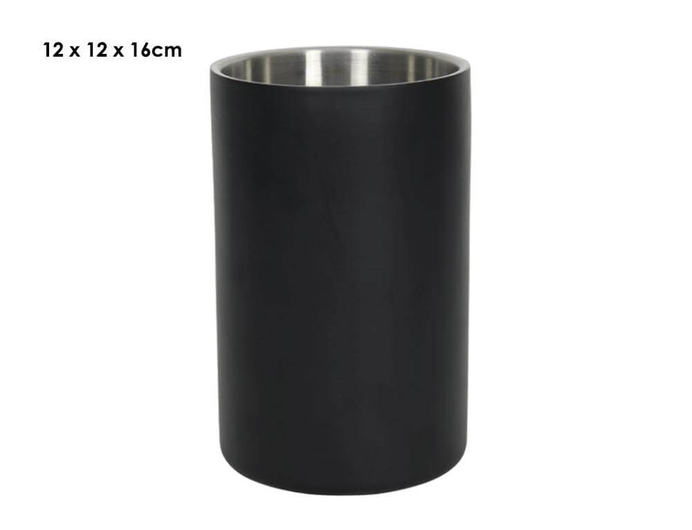 Σαμπανιέρα - Βάση μπουκαλιού 22092830 Με διπλό τοίχωμα, ανοξείδωτο ατσάλι, σατινέ μαύρο, 12 x 12 x 16 cm. Η σαμπανιέρα σε μαύρο χρώμα είναι ο πιο εύκολος τρόπος να ψύξετε το κρασί σας και να το διατηρήσετε δροσερό για αρκετή ώρα, απολαμβάνοντας τις αγαπημένες σας γεύσεις.