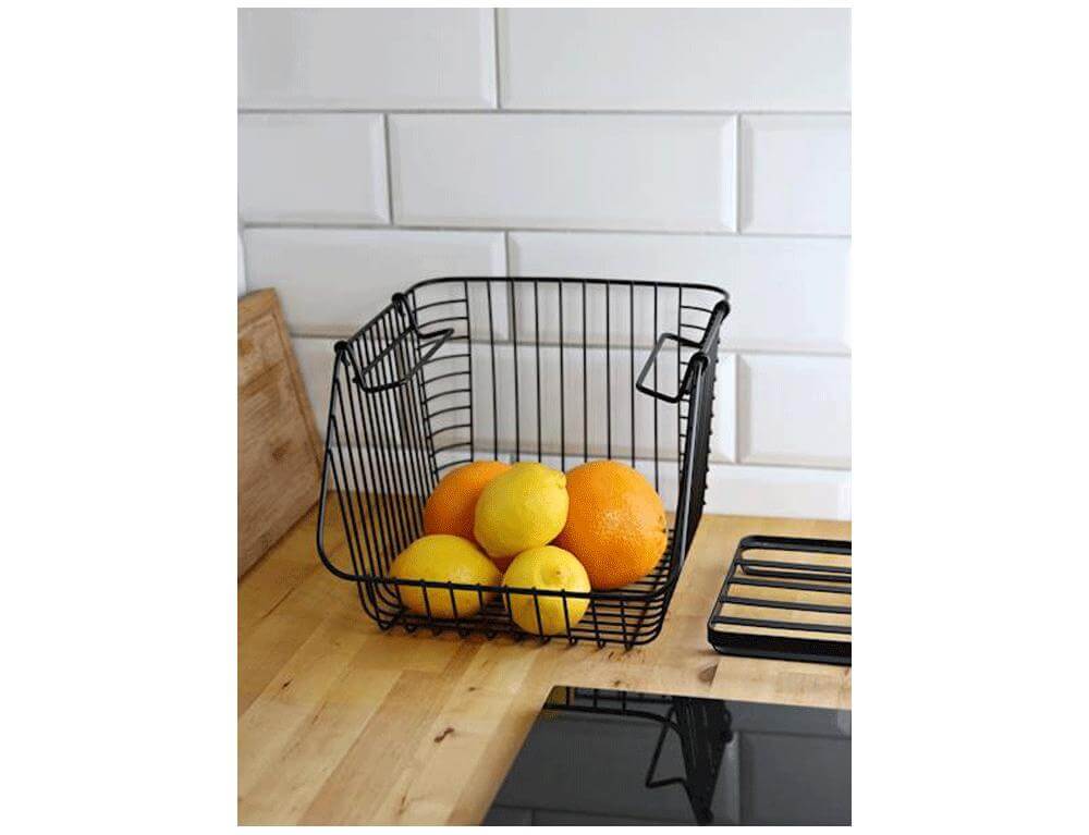 Μεταλλικό συρμάτινο καλάθι για φρούτα και λαχανικά Svenska Living (23491546)Μαύρο, με χειρολαβές, 27x29x22cm