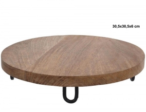 Στρογγυλή ξύλινη σανίδα σερβιρίσματος από ξύλο μάνγκο, με 4 μικρά μεταλλικά πόδια. Ιδανικό για να σερβίρετε πιάτα, ορεκτικά, σνακ, επιδόρπια και πολλά άλλα. Χάρη στην ανύψωση με τα 4 μικρά μεταλλικά πόδια, φαίνεται υπέροχο στο τραπέζι.
