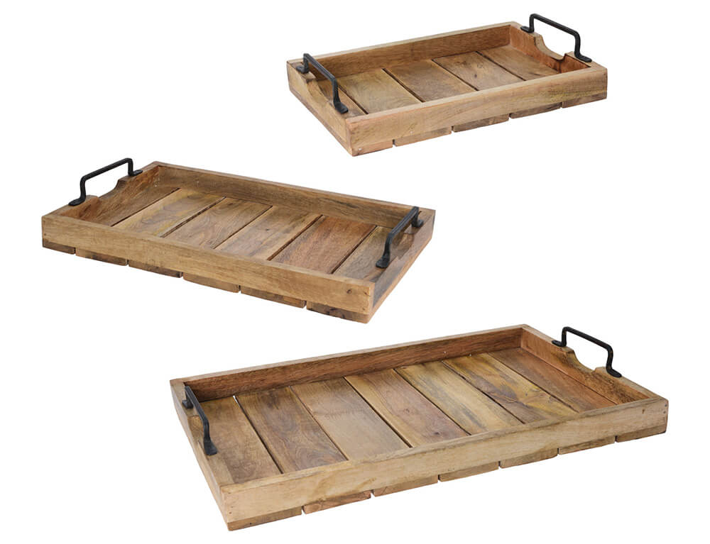 Οι δίσκοι σερβιρίσματος αποτελούν την ιδανική λύση για τον οικιακό εξοπλισμό, αφού μπορείτε να σερβίρετε ότι θέλετε ή ακόμα να τους έχετε ως διακόσμηση στο τραπέζι σας. Είναι κατασκευασμένος από ξύλο μάνγκο, ένα σκληρό ξύλο λόγω της αντοχής, της πυκνότητας, της ελκυστικής εμφάνισης και φυσικά της αντοχής του που του επιτρέπει να μην φθείρεται γρήγορα και να διατηρεί την υψηλή του στιλπνότητα για πολλά χρόνια. Συνίσταται το πλύσιμο στο χέρι αφού εξασφαλίζει πολύ μεγάλη διάρκεια ζωής. Διαθέτει μεταλλική λαβή που διευκολύνει στη χρήση και τη μεταφορά.