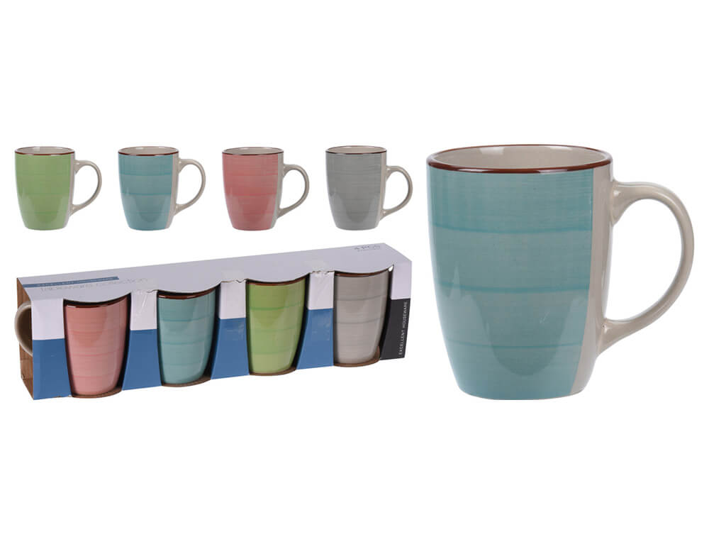 Με το σετ κούπες της εταιρείας Excellent Houseware μπορείτε να απολαύσετε το αγαπημένο σας ρόφημα είτε είναι ζεστό είτε κρύο. Είναι κατασκευασμένες από υψηλής ποιότητας κεραμικό και είναι κατάλληλες για φούρνο μικροκυμάτων και πλυντήριο πιάτων. Το απλό και κλασικό σχήμα κάνει το κύπελλο πολύ άνετο στη χρήση, ενώ τα χρώματα τους δίνουν μια ευχάριστη αίσθηση στο τραπέζι σας. Διαθέτουν λαβή άνετη στο χέρι.