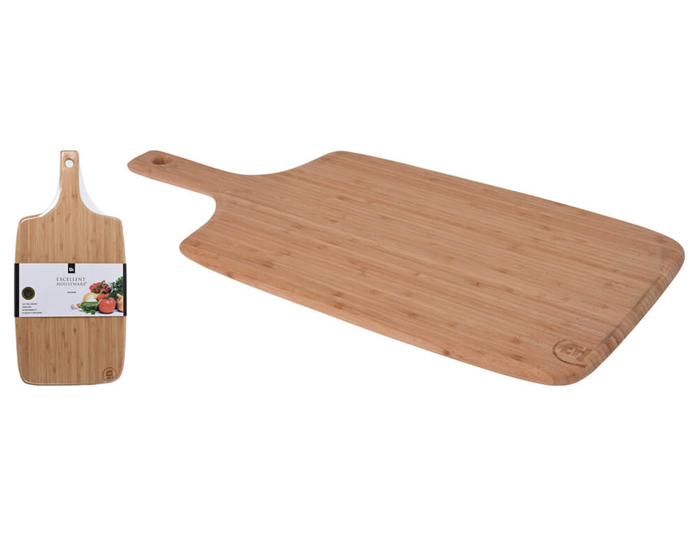 Η επιφάνεια κοπής της εταιρείας Excellent Houseware, αποτελεί την ιδανική λύση για τον οικιακό εξοπλισμό, για να τεμαχίσετε ή να ψιλοκόψετε οτιδήποτε χρειάζεται κατά την προετοιμασία ενός φαγητού. Είναι κατασκευασμένη από μπαμπού, ένα υλικό που το κάνει ελαφρύ και ανθεκτικό, δεν είναι όμως κατάλληλο για πλυντήριο πιάτων. Χάρη στην τρύπα που έχει στην λαβή, μπορείτε να την κρεμάσετε για εύκολη αποθήκευση.