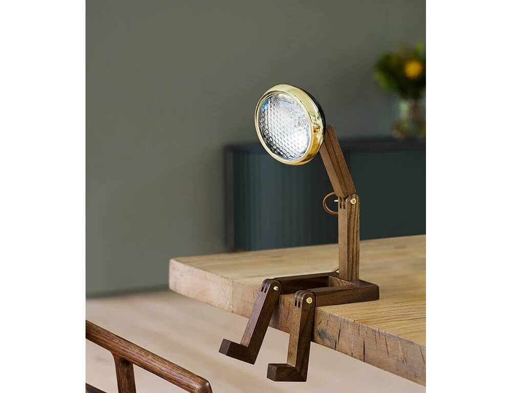 Ο κ. Wattson από την Piffany Copenhagen είναι ένα χειροποίητο εύκαμπτο επιτραπέζιο φωτιστικό, εξαιρετικό στο σχεδιασμό του, απευθύνεται σε μεγάλους και μικρούς και φέρνει χαρά και διασκέδαση σε κάθε δωμάτιο. Μπορείτε να τοποθετήσετε το σύγχρονο φωτιστικό σε τρία σημεία, το αμπαζούρ μπορεί να ρυθμιστεί έως και 120 μοίρες. Είναι κατασκευασμένο από ξύλο φράξου, ένα ανθεκτικό υλικό, και το κεφάλι του είναι εμπνευσμένο από τον προβολέα Vespa του 1946.