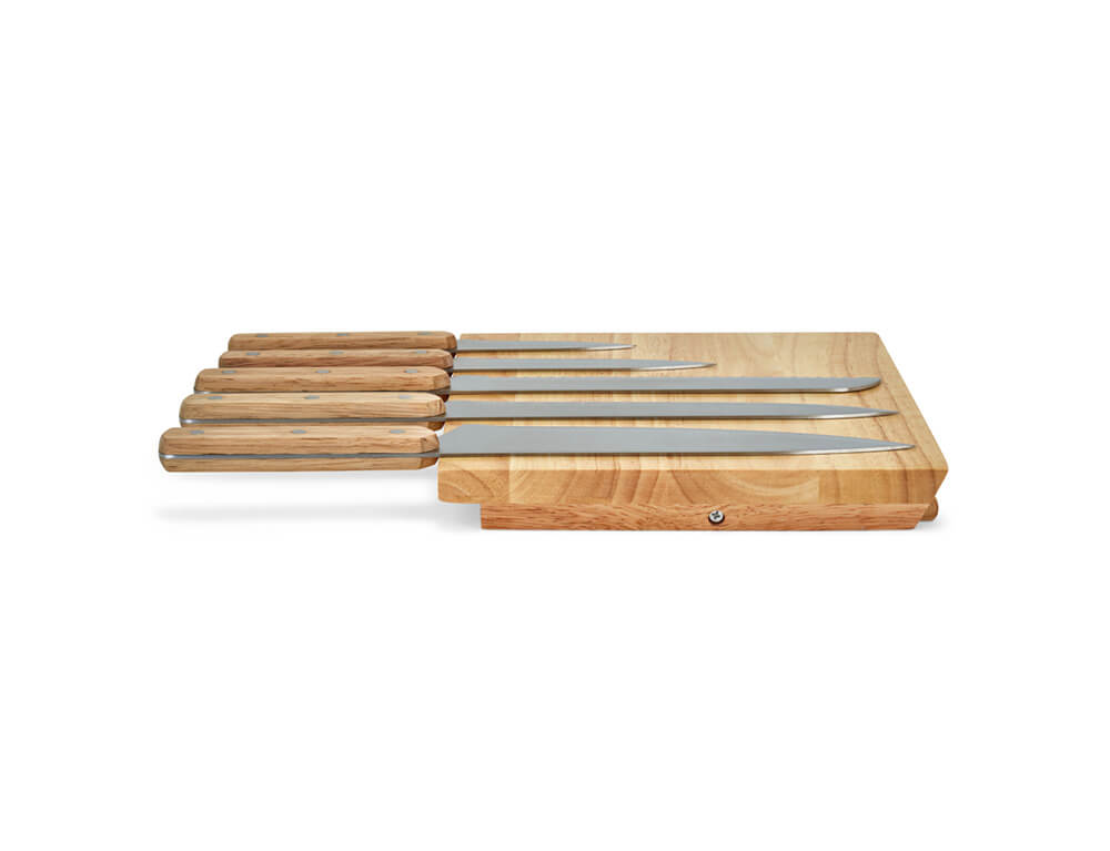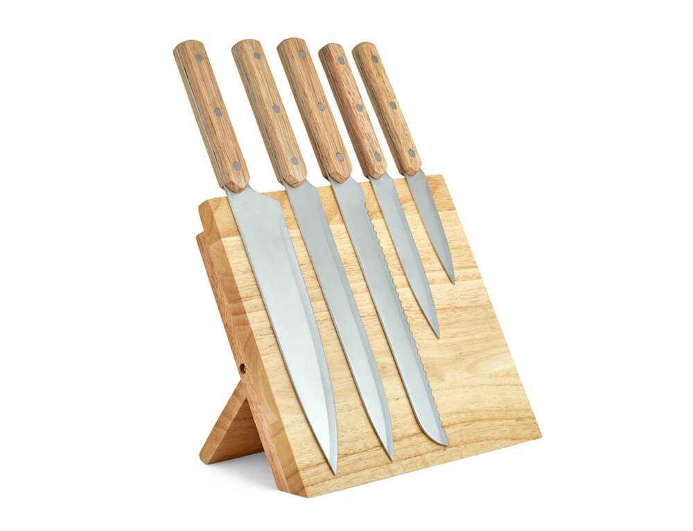 - Υλικό: Ανοξείδωτος χάλυβας (Λεπίδες), Ξύλο καουτσούκ (Βάση)