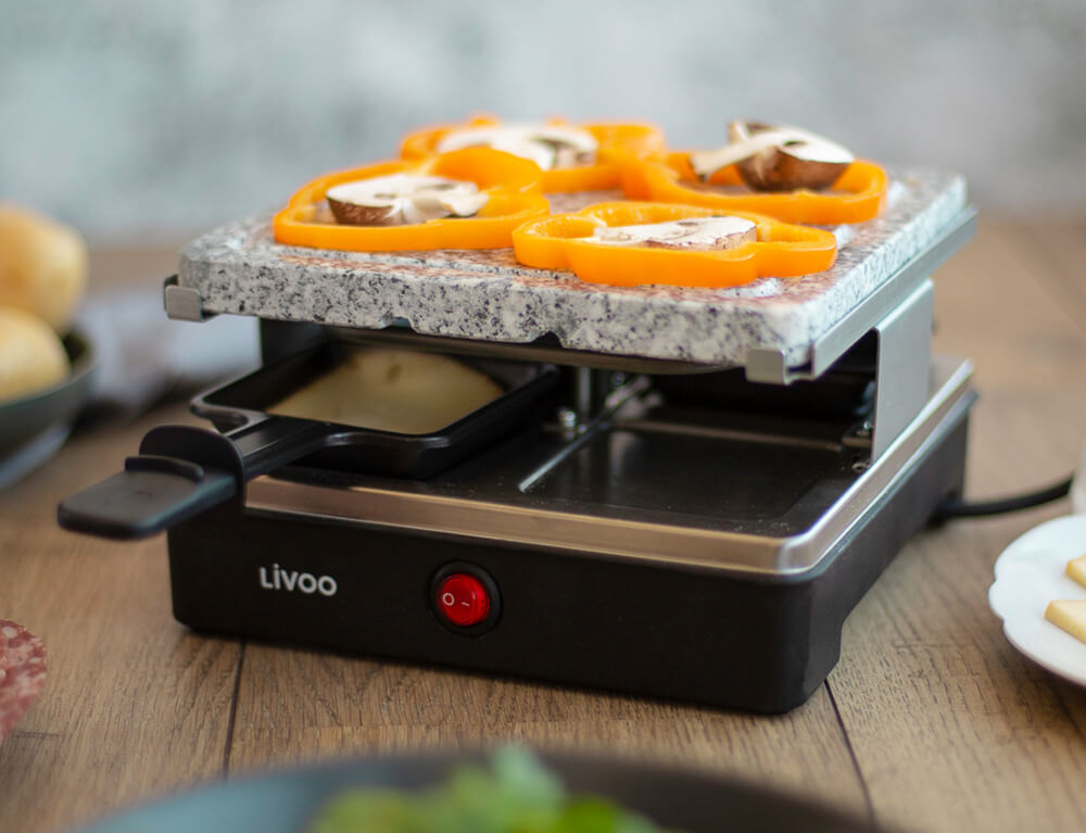 Η ηλεκτρική ψησταριά raclette της Livoo, σας δίνει τη δυνατότητα να περάσετε μια φανταστική βραδιά με την οικογένεια ή τους φίλους σας. Ετοιμάζετε το φαγητό όλοι μαζί και ο καθένας παίρνει ακριβώς αυτό που θέλει! Ένας σύγχρονος τρόπος σερβιρίσματος περιλαμβάνει μια ηλεκτρική επιτραπέζια σχάρα με μικρά τηγάνια, γνωστά ως τηγάνια raclette, τα οποία είναι ιδανικά για να ετοιμάζετε νόστιμες ομελέτες, τηγανίτες ή λιωμένο τυρί.