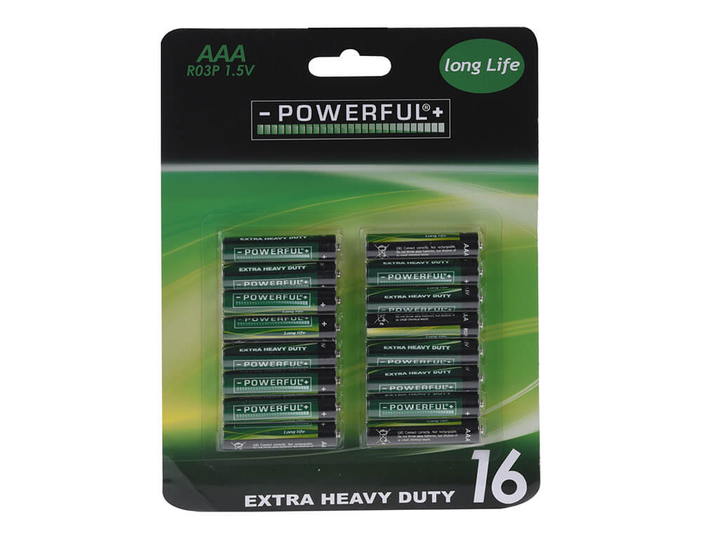 Αλκαλικές μπαταρίες της Powerful μεγέθους ΑΑΑ, ιδανικές για τηλεχειριστήρια, φακούς κι άλλες οικιακές μικροσυσκευές.