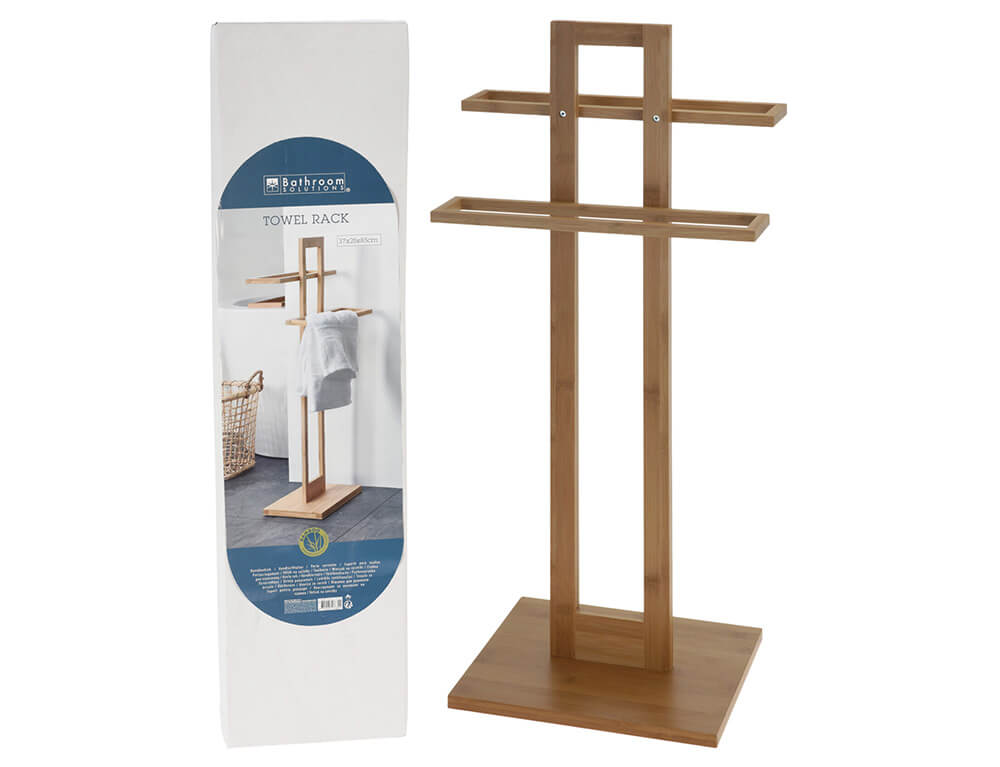 Αυτή η βάση για πετσέτες από μπαμπού από την Bathroom Solutions είναι μια τέλεια επιλογή για να κρεμάσετε τις πετσέτες σας για να στεγνώσουν διατηρώντας το εσωτερικό του μπάνιου σας κομψό. Είναι κατασκευασμένο από ξύλο μπαμπού, ένα υλικό φιλικό προς το περιβάλλον και ανθεκτικό στο χρόνο. Επίσης, είναι λιγότερο επιρρεπές σε φούσκωμα και μπορεί να καθαριστεί εύκολα.