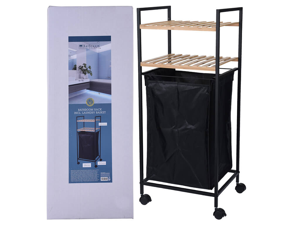 Διατηρήστε τα πράγματά σας οργανωμένα με αυτό το ράφι αποθήκευσης μπαμπού με 2 ράφια από την Bathroom Solutions. Επίσης, διαθέτει και υφασμάτινο καλάθι για τα άπλυτα, το οποίο βγαίνει και μπορείτε να το πλύνετε. Τα ράφια είναι κατασκευασμένα από ξύλο μπαμπού, ένα υλικό φιλικό προς το περιβάλλον και ανθεκτικό στο χρόνο και το πλαίσιο είναι κατασκευασμένο από μέταλλο. Επίσης, είναι λιγότερο επιρρεπές σε φούσκωμα και μπορεί να καθαριστεί εύκολα. Διαθέτει 4 ροδάκια για πιο εύκολη και γρήγορη μεταφορά.