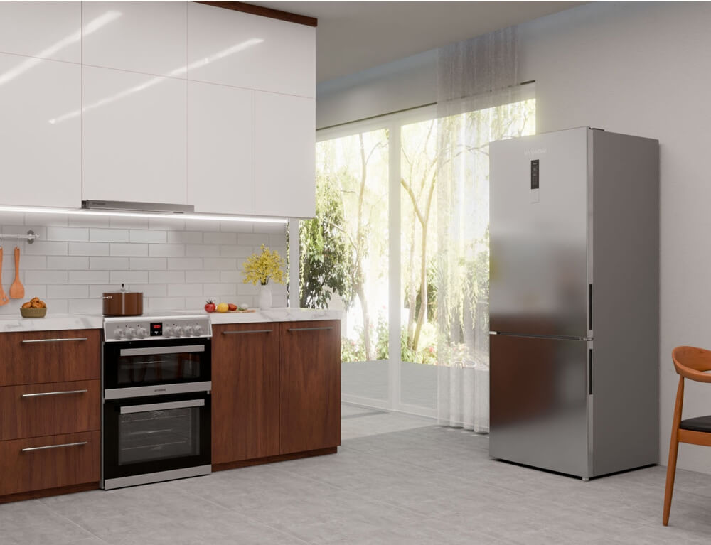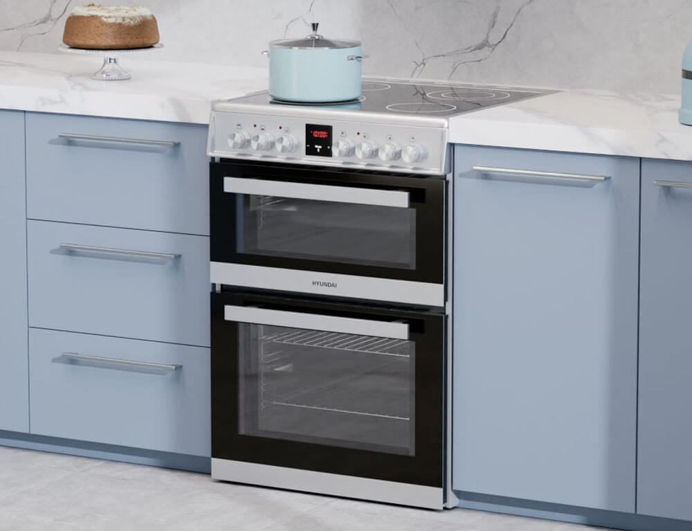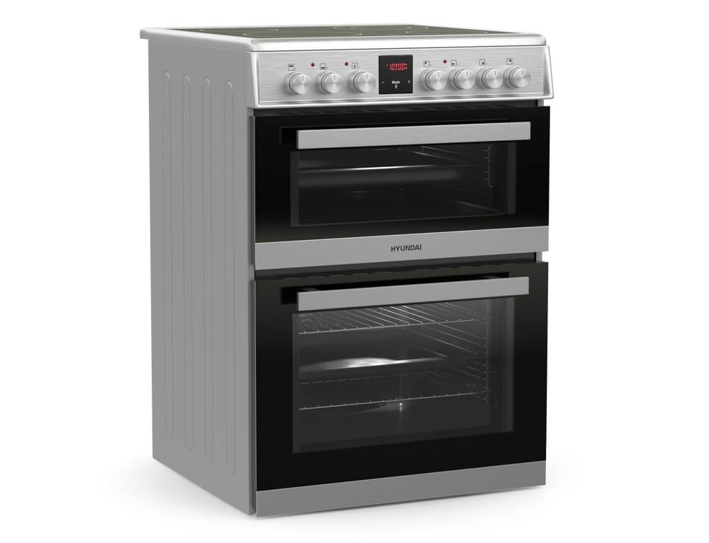 Κουζίνα Hyundai HCV22-70L60N-DUAL/X με δύο φούρνους για μεγαλύτερη ευελιξία με χωρητικότητα 61 λίτρα και 37 λίτρα, ενεργειακή κλάση Α και κεραμικές εστίες μαγειρέματος για ταχύτατο μαγείρεμα.