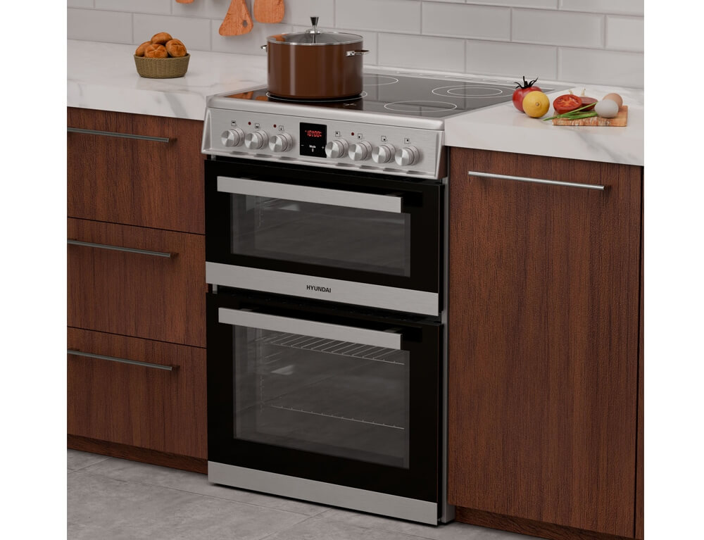 Κουζίνα Hyundai HCV22-70L60N-DUAL/X με 2 φούρνους (61L + 37L), κεραμικές εστίες, οθόνη αφής προγραμματισμού και ενεργειακή κλάση Α