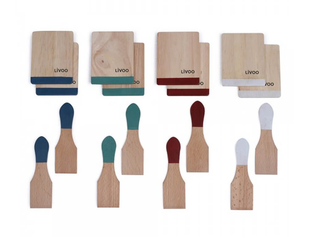 • Αυθεντικό σετ καουτσούκ με χρωματιστές πινελιές, αποτελούμενο από 8 σπάτουλες για το σερβίρισμα της ρακλέτας και 8 σανίδες για την τοποθέτηση του καυτού caquelon