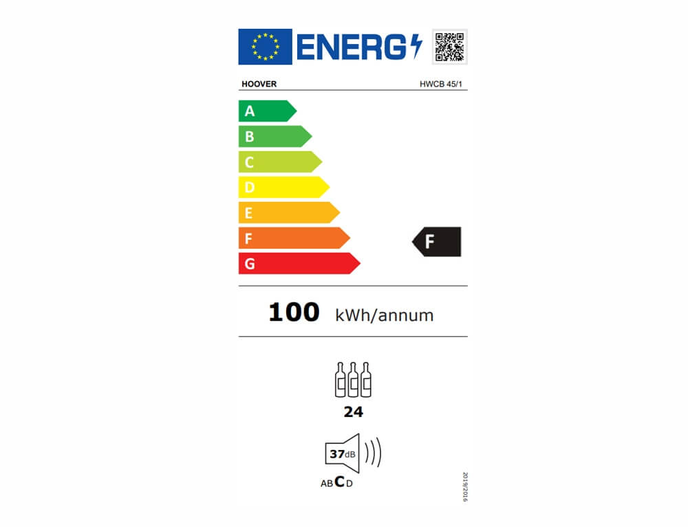 Σύμφωνα με το New Energy Labeling, αυτή η κάβα Κατηγορίας F μειώνει την κατανάλωση έως και 34% σε σύγκριση με μια κατηγορία G, εξοικονομώντας ενέργεια και προστατεύοντας το περιβάλλον.