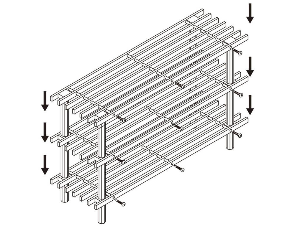 Το ράφι συναρμολογείται πολύ εύκολα, απλώς βιδώστε τους στύλους στήριξης χωρίς να χρησιμοποιήσετε κανένα εργαλείο.