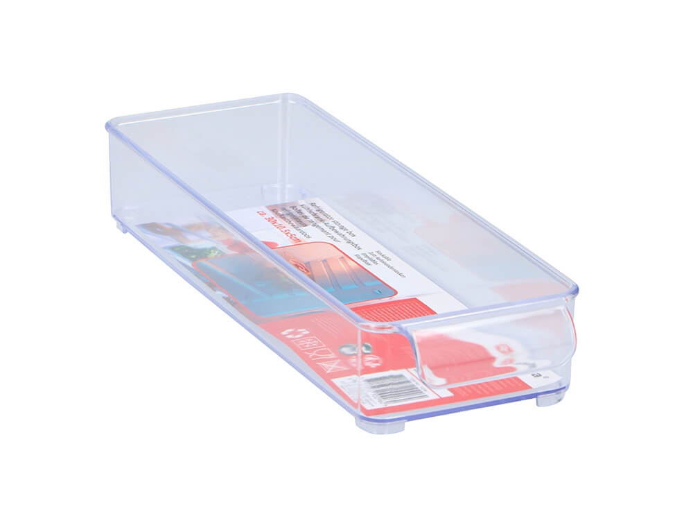 Οργανώστε το ψυγείο σας με το ράφι οργάνωσης από την εταιρεία Alpina. Αυτό το διαφανές ράφι είναι κατασκευασμένο από πλαστικό και είναι κατάλληλο και για αποθήκευση τροφίμων. Ιδανικό επίσης για αποθήκευση φαγητού εντός και εκτός ψυγείου, στο ντουλάπι ή στον πάγκο. Χάρη στο διαφανές πλαστικό, ξέρετε πάντα τι υπάρχει μέσα και με τη λαβή που διαθέτει μπορείτε να το τραβήξετε γρήγορα και εύκολα.