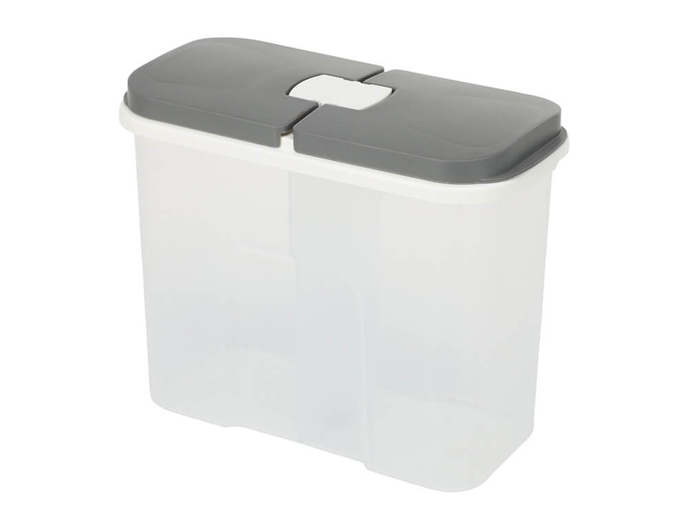 Οργανώστε τα ντουλάπια σας και την κουζίνα σας με το δοχείο αποθήκευσης από την Excellent Houseware. Χάρη στο διαχωρισμό του σε 4 μέρη μπορείτε να αποθηκεύσετε διάφορα προϊόντα (ζυμαρικά, όσπρια, κτλ) ξεχωριστά και ταυτόχρονα να εξοικονομήσετε και χώρο. Το συμπαγές κλείσιμο προστατεύει τα προϊόντα από την υγρασία και αποτρέπει τη διαρροή του περιεχομένου. Κάθε θήκη έχει ξεχωριστό άνοιγμα και χωράει 450 ml προϊόντος, η συνολική χωρητικότητα του δοχείου είναι 1800 ml.