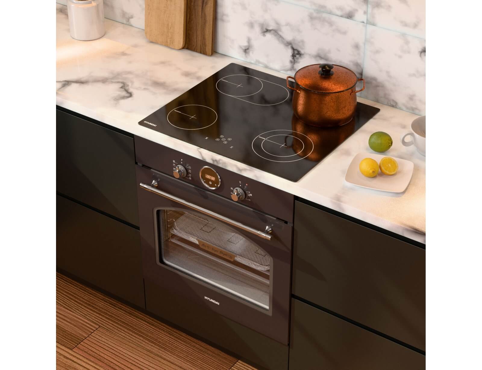 Εντοιχιζόμενος φούρνος Hyundai HBIOR24S-60AN με χωρητικότητα 60 λίτρα, ενεργειακή κλάση Α και 9 λειτουργίες μαγειρέματος.