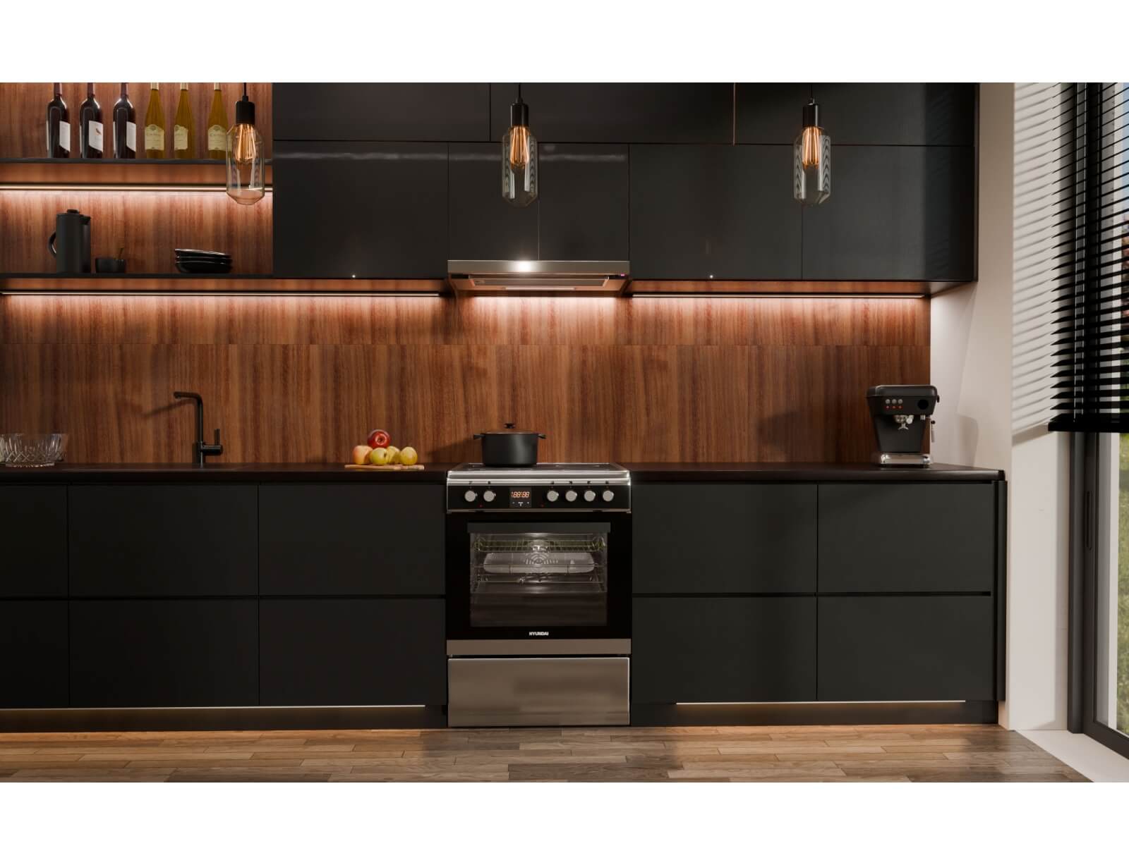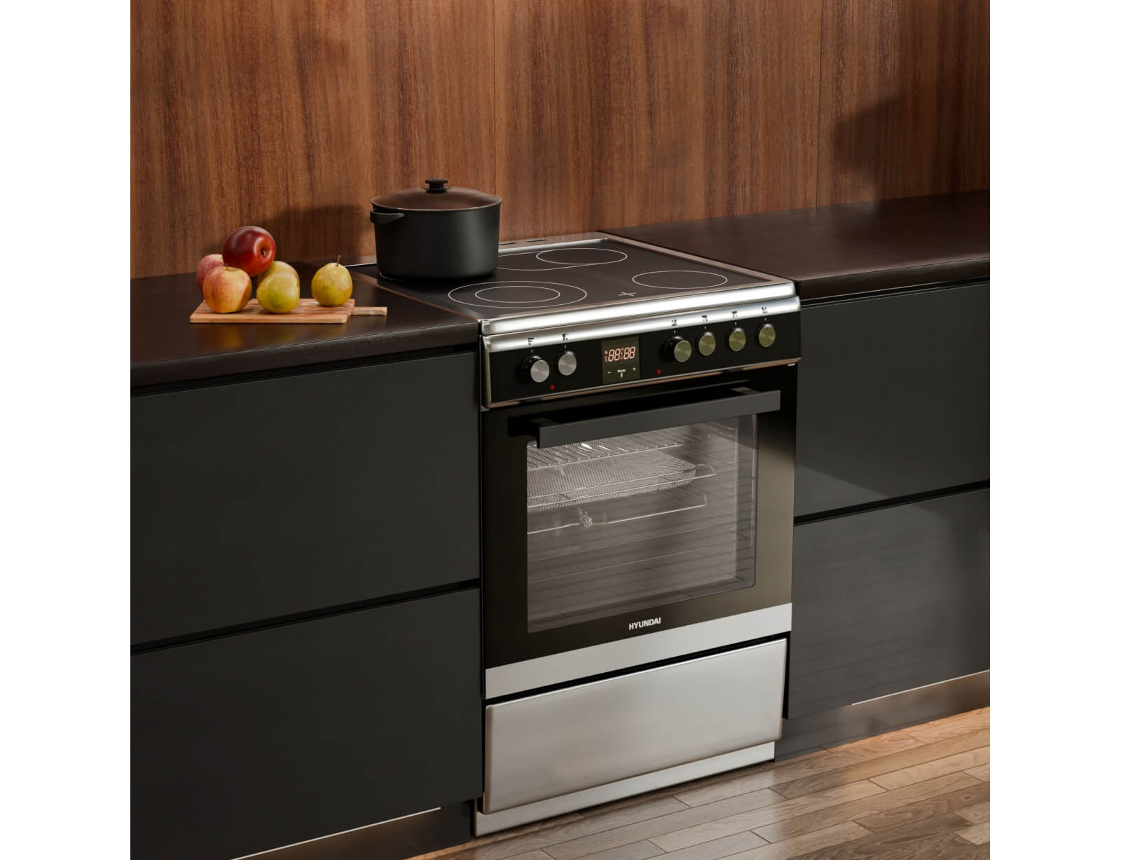 Κουζίνα Hyundai HCVC23-7260V/XP με πολυλειτουργικό φούρνο, χωρητικότητα φούρνου 69 λίτρα, ενεργειακή κλάση Α, 4 κεραμικές εστίες και 9 λειτουργίες ψησίματος.