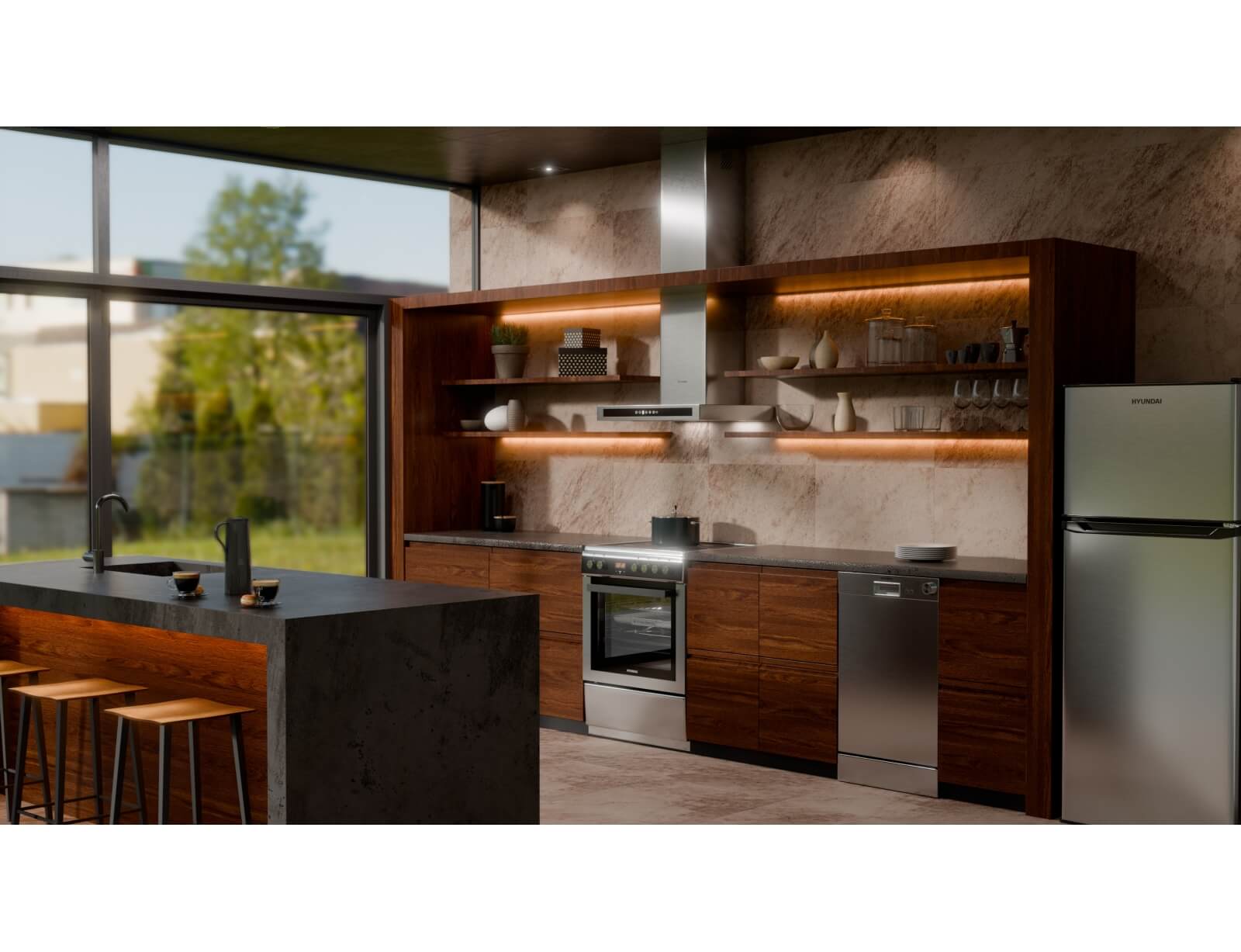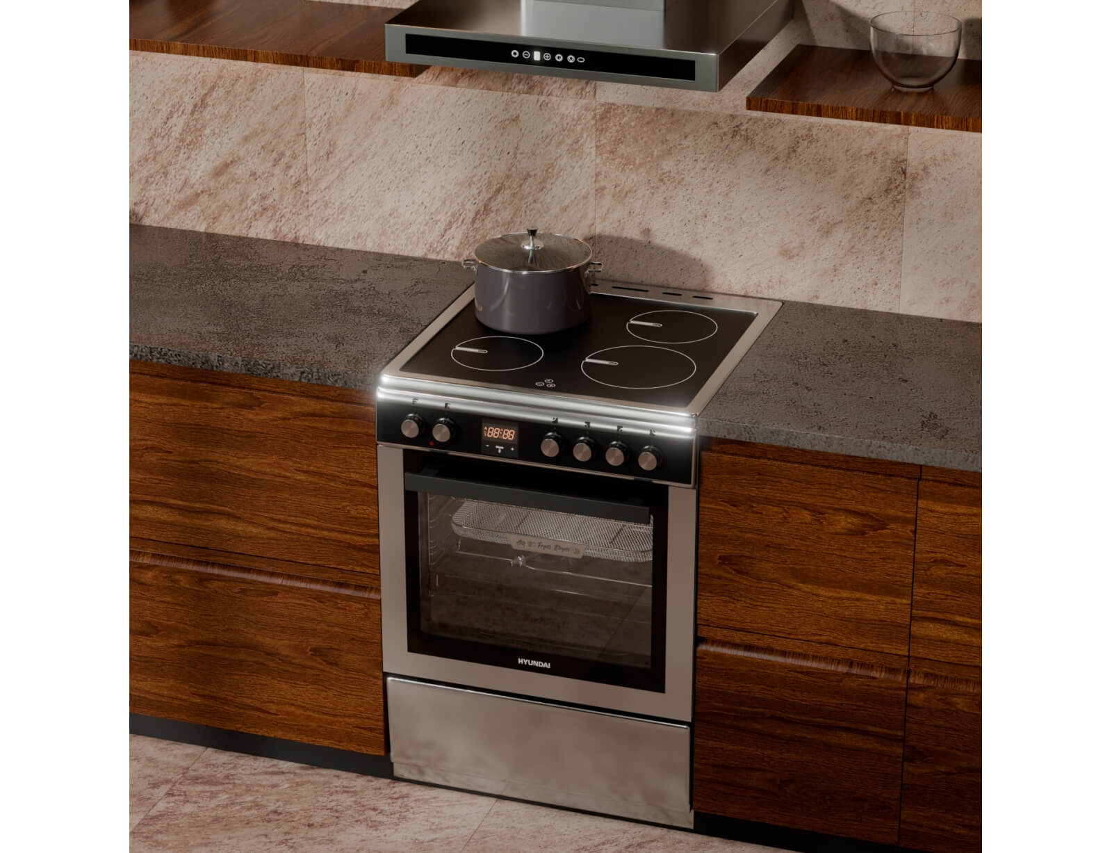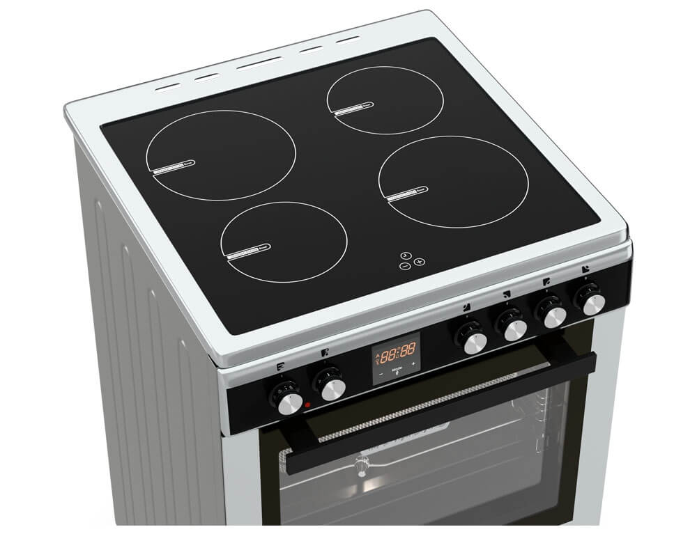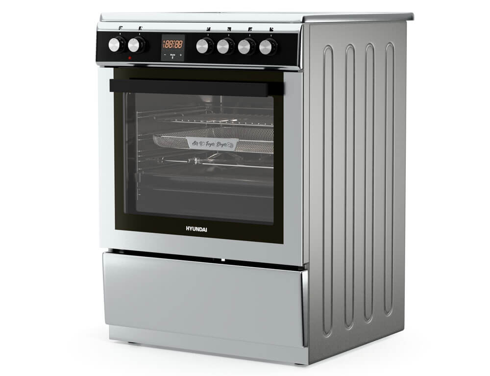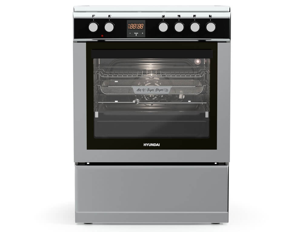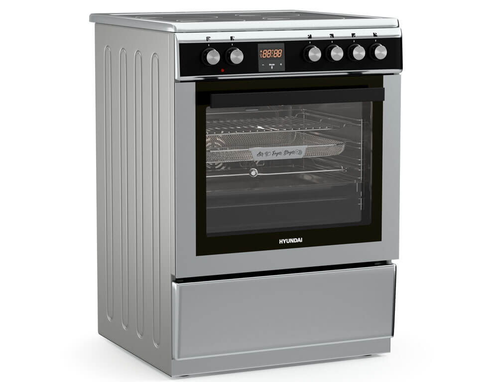 Κουζίνα Hyundai HCIN23-7260I/X με πολυλειτουργικό φούρνο, χωρητικότητα φούρνου 69 λίτρα, ενεργειακή κλάση Α, 4 επαγωγικές εστίες και 9 λειτουργίες ψησίματος.