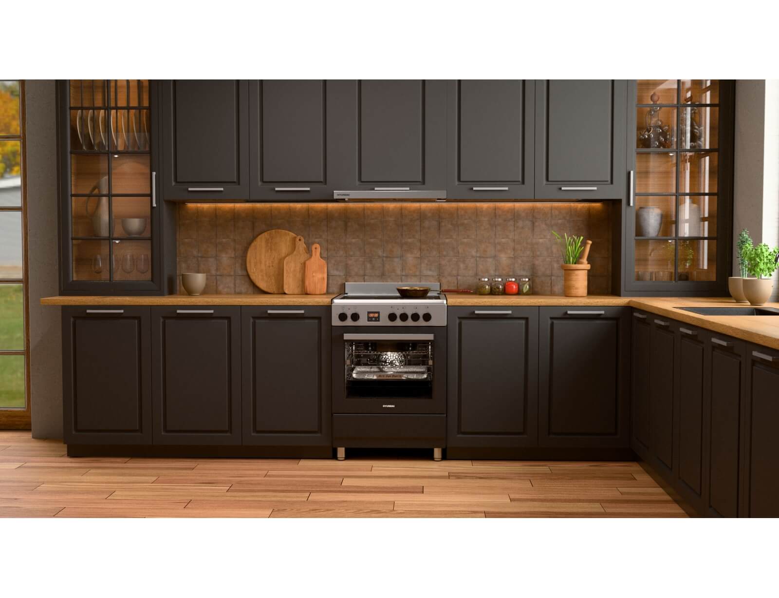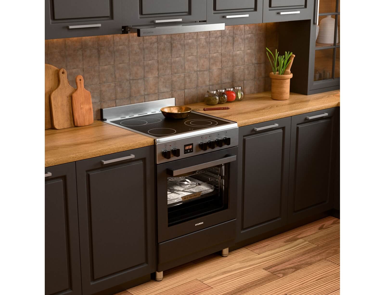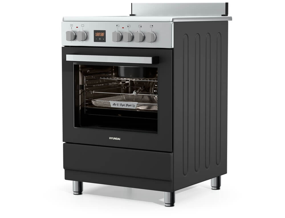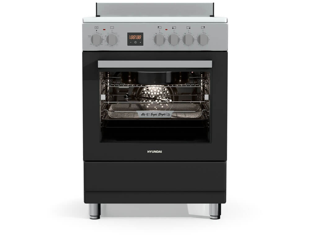 Η κουζίνα Hyundai HCVR24S-6060V/AN έρχεται με προδιαγραφές ημιεπαγγελματικής κουζίνας με κεραμικές εστίες με 6 ζώνες, χωρητικότητα φούρνου 60 λίτρα, ενεργειακή κλάση Α, 10 λειτουργίες ψησίματος και ρετρό εμφάνιση.