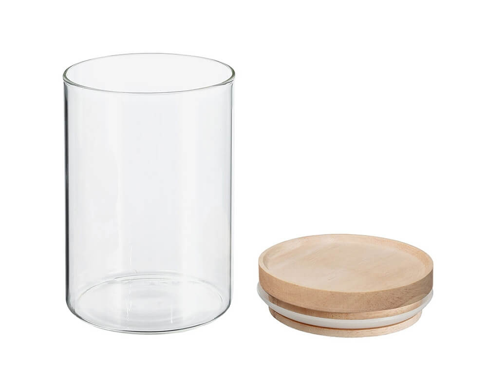 Με το γυάλινο δοχείο τροφίμων μπορείτε να οργανώσετε την κουζίνα σας και να αποθηκεύσετε τρόφιμα ή τα αγαπημένα σας γλυκίσματα. Το καπάκι του είναι κατασκευασμένο από ξύλο και κλείνει αεροστεγώς, με αποτέλεσμα να μην αλλοιώνονται τα τρόφιμα από την υγρασία, τη μούχλα, τη σκόνη και άλλους ρύπους. Επίσης, το φαγητό σας θα παραμείνει πιο φρέσκο με το αρχικό άρωμα για μεγαλύτερο χρονικό διάστημα. To δοχείο είναι κατάλληλο για φούρνο μικροκυμάτων και πλυντήριο πιάτων, αλλά χωρίς το καπάκι.