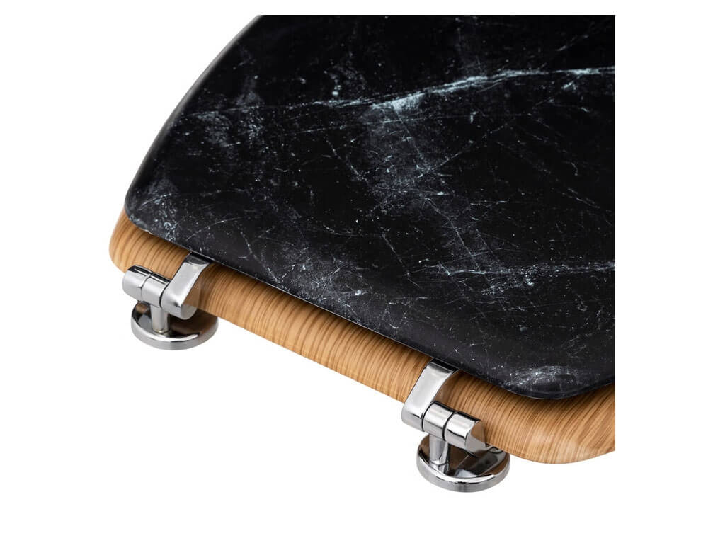 Πρακτικό καπάκι τουαλέτας από ανθεκτικό ξύλο MDF με μεντεσέδες από ανοξείδωτο ατσάλι. Πρόκειται για ένα πρακτικό αξεσουάρ μπάνιου ανθεκτικό σε χρώση, ξεθώριασμα και ξεφλούδισμα. Καθαρίστε με ζεστό σαπουνόνερο.