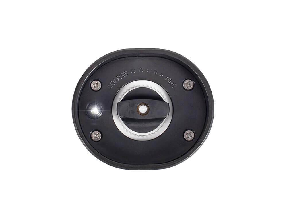 Κεραμικός τροχός λείανσης με ρυθμιζόμενο άλεσμα για να εξασφαλίσει ομοιόμορφο μέγεθος κόκκου, ανάλογα με το μπαχαρικό.