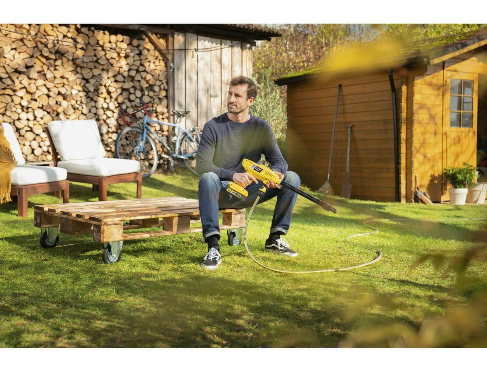 Πίεση 21 bar για αποτελεσματικό, κινητό και εύκολο εντατικό καθαρισμό. Εύκολα ανταλλάξιμα ακροφύσια Quick Connect Επίπεδο ακροφύσιο εκτόξευσης για απαλό καθαρισμό που περιλαμβάνεται στην συσκευασία.