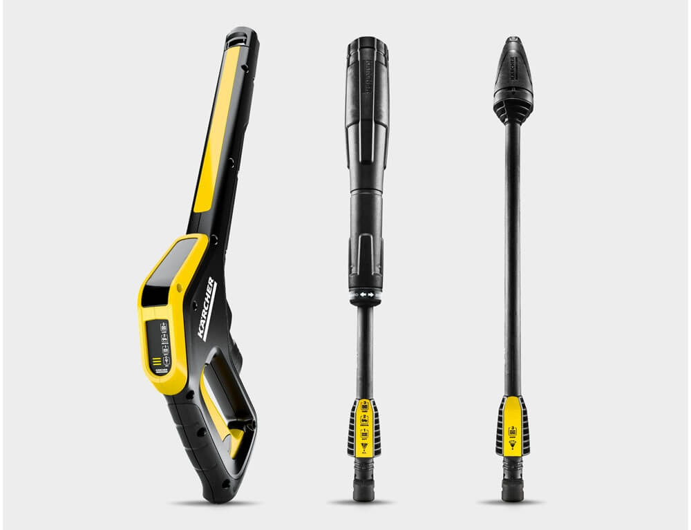 Με δυνατότητα λήψης βέλτιστης υποστήριξης μέσω της εφαρμογής Home & Garden της Kärcher που περιλαμβάνει τον σύμβουλο εφαρμογής: Το πλυστικό μηχάνημα K 4 Power Control με πιστόλι ψεκασμού G 160 Q Power Control και κάνες ψεκασμού.