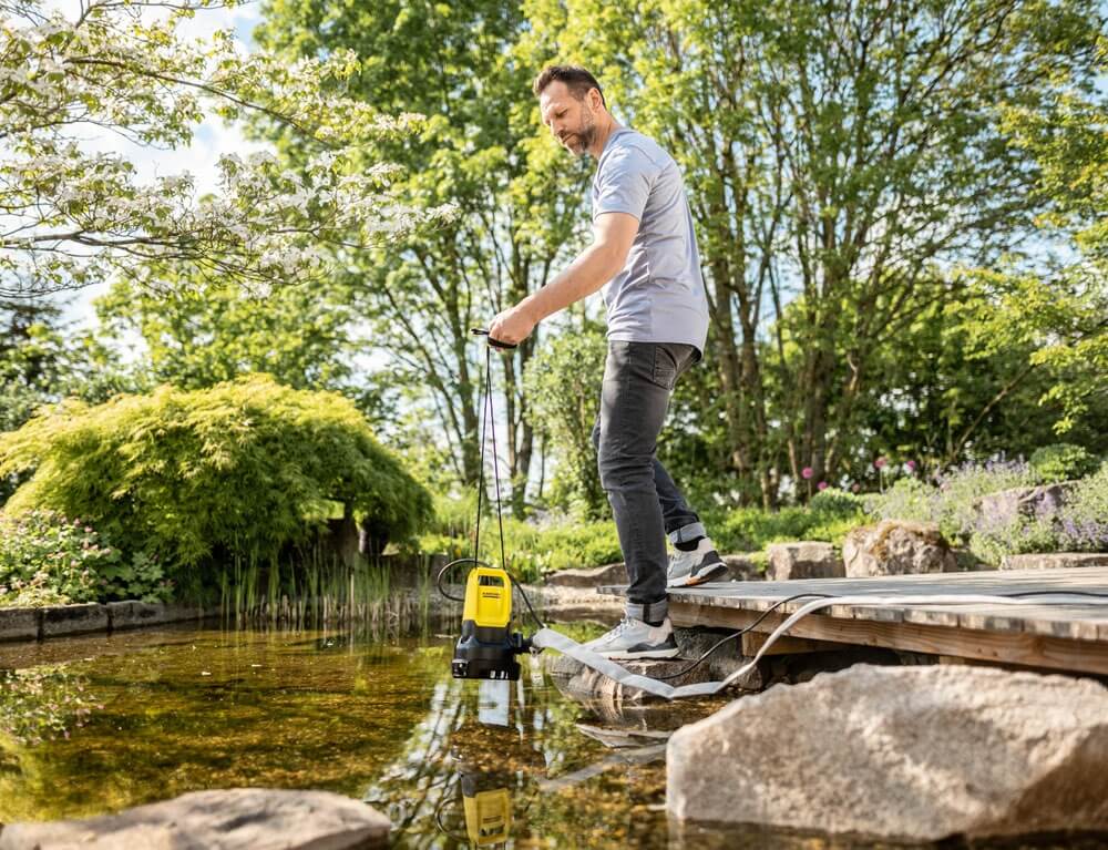 Η στιβαρή υποβρύχια αντλία SP 16.000 Dual με λειτουργία 2 σε 1 για βρώμικα νερά, επίπεδη αναρρόφηση 1 mm και πλωτηροδιακόπτη ρυθμιζόμενου ύψους.