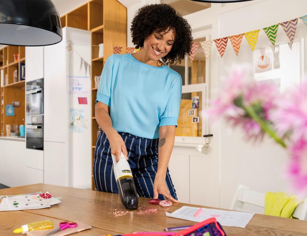 Ισχυρό και έτοιμο για χρήση οπουδήποτε και ανά πάσα στιγμή: με το συμπαγές επαναφορτιζόμενο σκουπάκι CVH 3 Plus, μπορείς να πεις αντίο στη βρωμιά στο σαλόνι, το υπνοδωμάτιο, την κουζίνα ή το αυτοκίνητο.