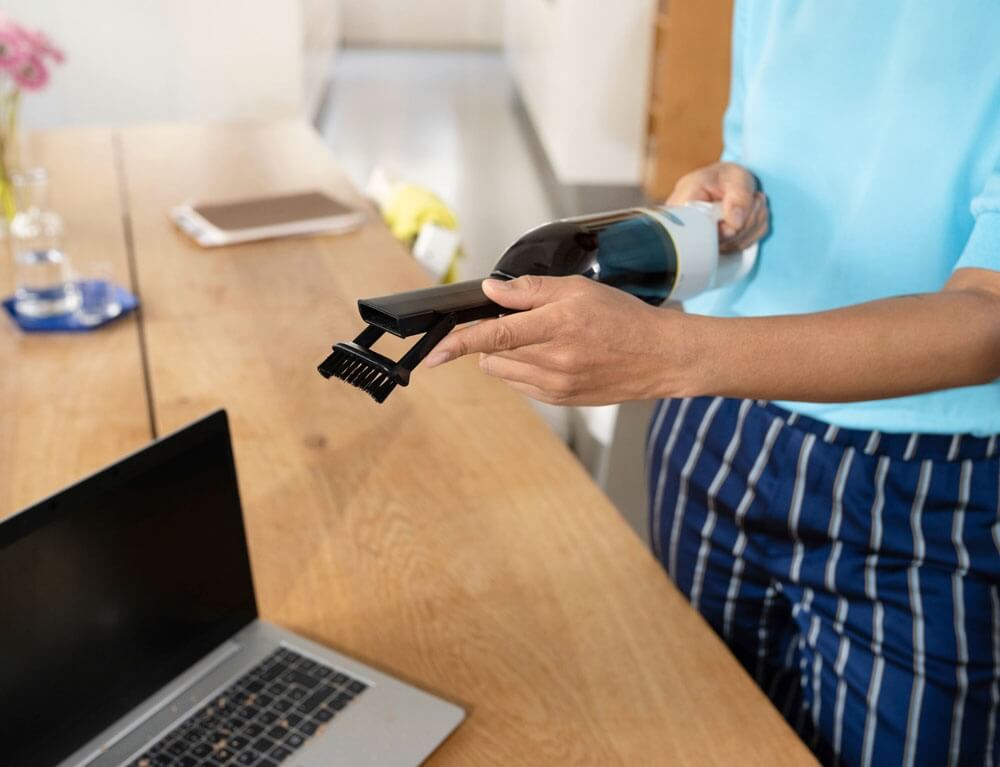 Το επαναφορτιζόμενο σκουπάκι CVH 3 Plus που λειτουργεί με μπαταρία αφαιρεί αποτελεσματικά κάθε είδους βρωμιά, όπως τρίχες, ψίχουλα και σκόνη, από οπουδήποτε και χωρίς να αφήνει ίχνη. Επιπλέον, το πλενόμενο σύστημα φίλτρου δύο σταδίων, που περιλαμβάνει ένα λεπτό χαλύβδινο πλέγμα για χονδροειδείς ρύπους και τρίχες και ένα φίλτρο HEPA (EN 1822:1998) διασφαλίζει ότι ο αέρας εξαγωγής είναι εξαιρετικά καθαρός. Άλλα πλεονεκτήματα: υψηλή ισχύς αναρρόφησης και μεγαλύτερη διάρκεια ζωής χάρη στον αθόρυβο κινητήρα BLDC, τη συμπαγή και ελαφριά σχεδίαση, τα δύο διαφορετικά επίπεδα αναρρόφησης με χρόνο λειτουργίας μπαταρίας έως και 20 λεπτά και έναν βολικό σταθμό φόρτισης που περιλαμβάνει αποθήκευση εξαρτημάτων.