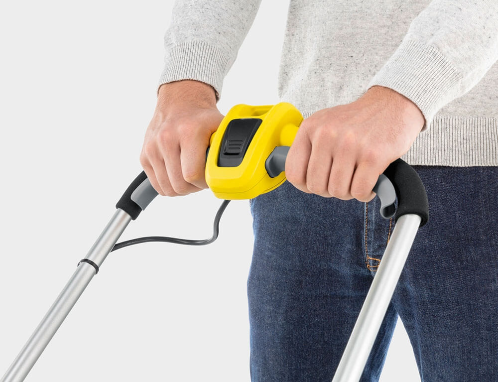 Η λαβή οδηγού μπορεί να προσαρμοστεί στο ύψος - έτσι ώστε να παραμένετε πάντα σε όρθια θέση κατά την εργασία Η αφρώδης λαβή σημαίνει ότι μπορεί να κρατηθεί με ασφάλεια και να αισθάνεστε άνετα. Οι διακόπτες και στις δύο πλευρές διευκολύνουν τη λειτουργία.