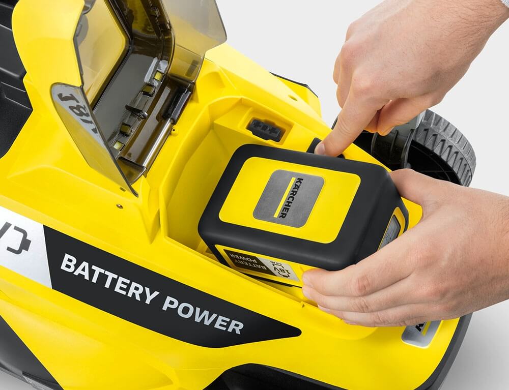 Τεχνολογία πραγματικού χρόνου (Real Time) για τη λειτουργία οθόνης LCD στην μπαταρία με τις ακόλουθες ενδείξεις: υπολειπόμενος χρόνος λειτουργίας, υπολειπόμενος χρόνος φόρτισης και χωρητικότητα μπαταρίας. Μεγάλη και ισχυρή χάρη στα κύτταρα ιόντων λιθίου. Η ανταλλάξιμη μπαταρία μπορεί να χρησιμοποιηθεί σε όλες τις άλλες συσκευές της πλατφόρμας μπαταριών 18V Battery Power της Kärcher.