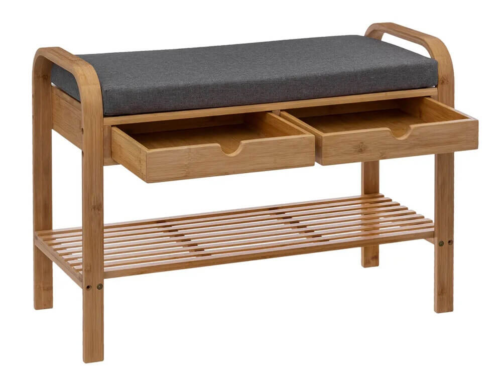 Το έπιπλο της εταιρείας 5Five είναι κατάλληλο για χρήση στην είσοδο του σπιτιού, στο χωλ ή στον διάδρομο καθώς θα σας εξυπηρετήσει στην οργάνωση των παπουτσιών σας, ενώ φέρει και παγκάκι για να σας βοηθήσει στην τοποθέτηση των παπουτσιών σας. Είναι κατασκευασμένο από μπαμπού, το οποίο προσφέρει ανθεκτικότητα και σταθερότητα.