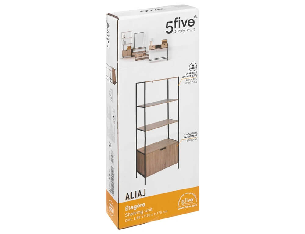 Η ραφιέρα δαπέδου της εταιρείας 5five αποτελείται από μέταλλο και MDF, ένα παράγωγο ξύλου από μικρά κομμάτια ξύλου και πριονίδι. Κατάλληλη επιλογή για τη διακόσμηση ενός δωματίου ή για τη δημιουργία επιπλέον αποθηκευτικών χώρων.