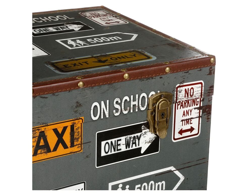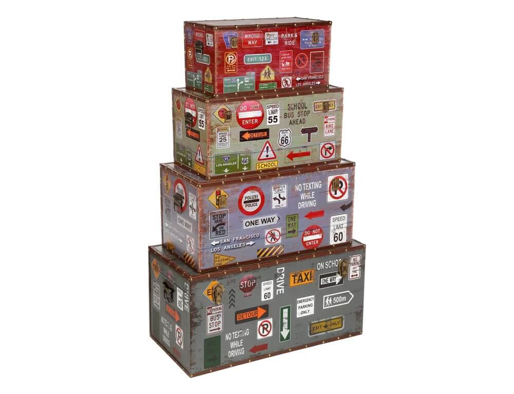 Διαθέσιμο σε τέσσερα διαφορετικά μεγέθη, αυτό το σετ 4 μπαούλων "City" είναι εμπνευσμένο από vintage ταξιδιωτικά μπαούλα και εργοστασιακά τελάρα.