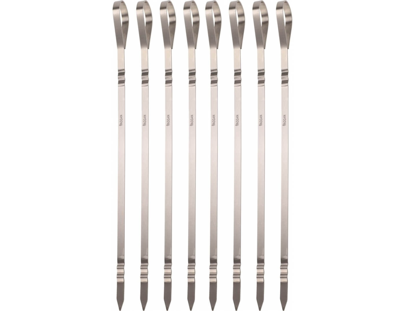 Ετοιμάστε τα πιο νόστιμα πιάτα στο γκριλ ή στο μπάρμπεκιου με αυτό το premium σετ! Τα μεταλλικά σουβλάκια μπάρμπεκιου Vaggan είναι ιδανικά για το ψήσιμο κρεάτων, λαχανικών και θαλασσινών στο μπάρμπεκιου σας. Κατασκευασμένα από ανοξείδωτο ατσάλι υψηλής ποιότητας, τα σουβλάκια αυτά είναι ανθεκτικά στη ρύπανση και τη διάβρωση, εξασφαλίζοντας μακροχρόνια αντοχή και χρήση. Με μήκος 41 εκατοστά, είναι ιδανικά για την προετοιμασία και ψήσιμο διαφόρων ειδών φαγητών σε κάθε μπάρμπεκιου εκδήλωση. Απολαύστε νόστιμα και τέλεια ψημένα φαγητά με τα μεταλλικά σουβλάκια μπάρμπεκιου Vaggan!