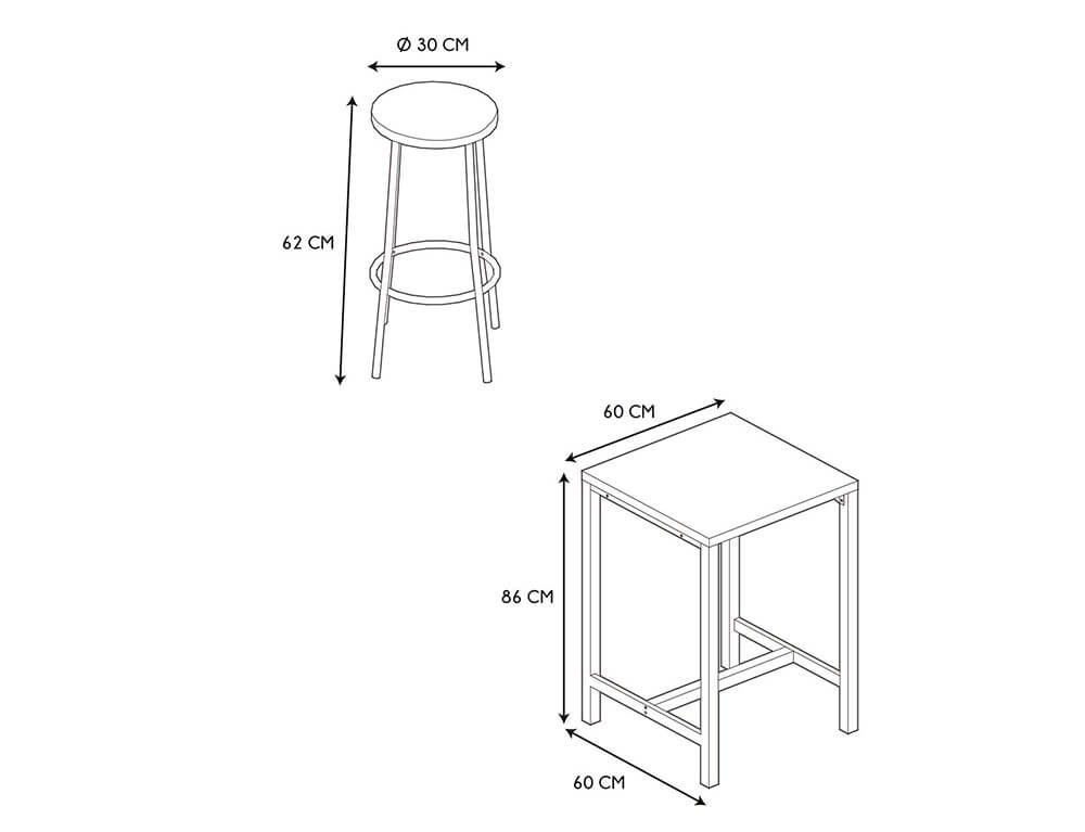 Διαστάσεις Τραπέζι: 60x60x86cm/ Σκαμπό: 30x30x62cm