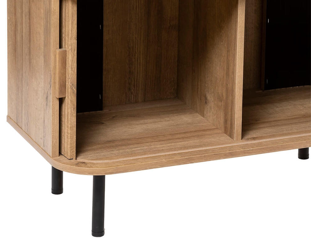 Η βιβλιοθήκη Colva από τη Atmosphera είναι η ιδανική προσθήκη στο χώρο σας. Ο μοντέρνος σχεδιασμός και η ανθεκτική της κατασκεή θα φιλοξενήσει με μεγάλη άνεση τα βιβλία και τα διακοσμητικά σας. Φτιάξε τις δικές σας συνθέσεις με διακοσμητικά, γλαστράκια, βιβλία και ότι άλλο επιθυμείτε και δώστε μια ξεχωριστή νότα στο χώρο σας. Διαθέτει 3 ράφια και δύο ντουλάπια με συρόμενες πόρτες, τα οποία θα σας επιτρέψουν να αποθηκεύετε αντικείμενα μακριά από τη σκόνη. Κατασκευασμένη με λείες στρογγυλεμένες άκρες και σε εφέ από μασίφ φυσικό ξύλο, διαθέτει εντυπωσιακό σχέδιο με επένδυση με λεπτές, ευθείες γραμμές κατά μήκος του ντουλαπιού.