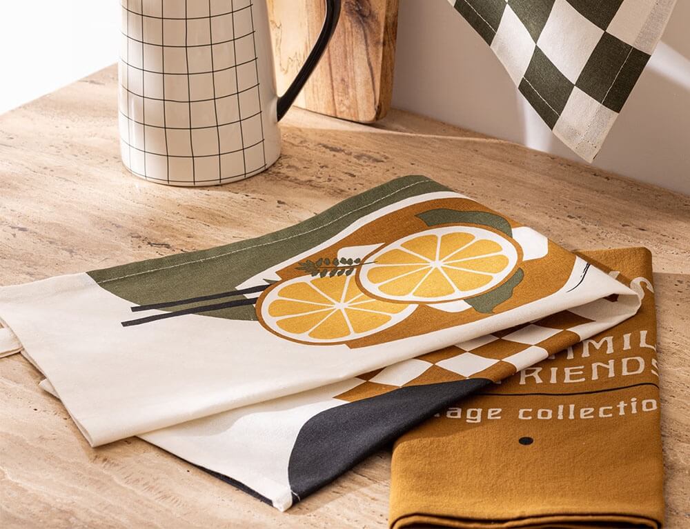Διατηρήστε την κουζίνα σας καθαρή με το σετ ποτηρόπανα από την Atmosphera. Το ύφασμά τους είναι 100% βαμβακερό με διαφορετικά μοντέρνα σχέδια σε εκρού, πράσινο και στο χρώμα της ώχρας. Διαθέτουν θηλάκι κρεμάσματος για να στεγνώνουν γρήγορα και να είναι πάντα τακτοποιημένα. Κατασκευασμένα από 100% βιολογικό βαμβάκι, είναι φιλικά προς το περιβάλλον και ασφαλή για τους αγαπημένους σας. Αντέχουν στη χρήση και προσφέρουν άριστη απορροφητικότητα.