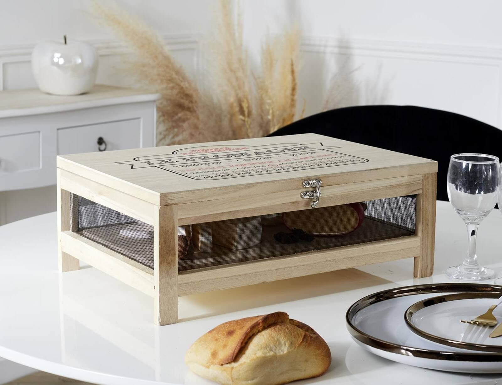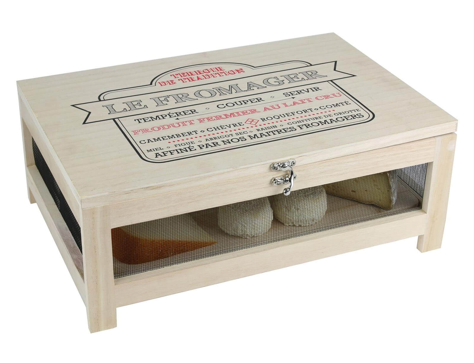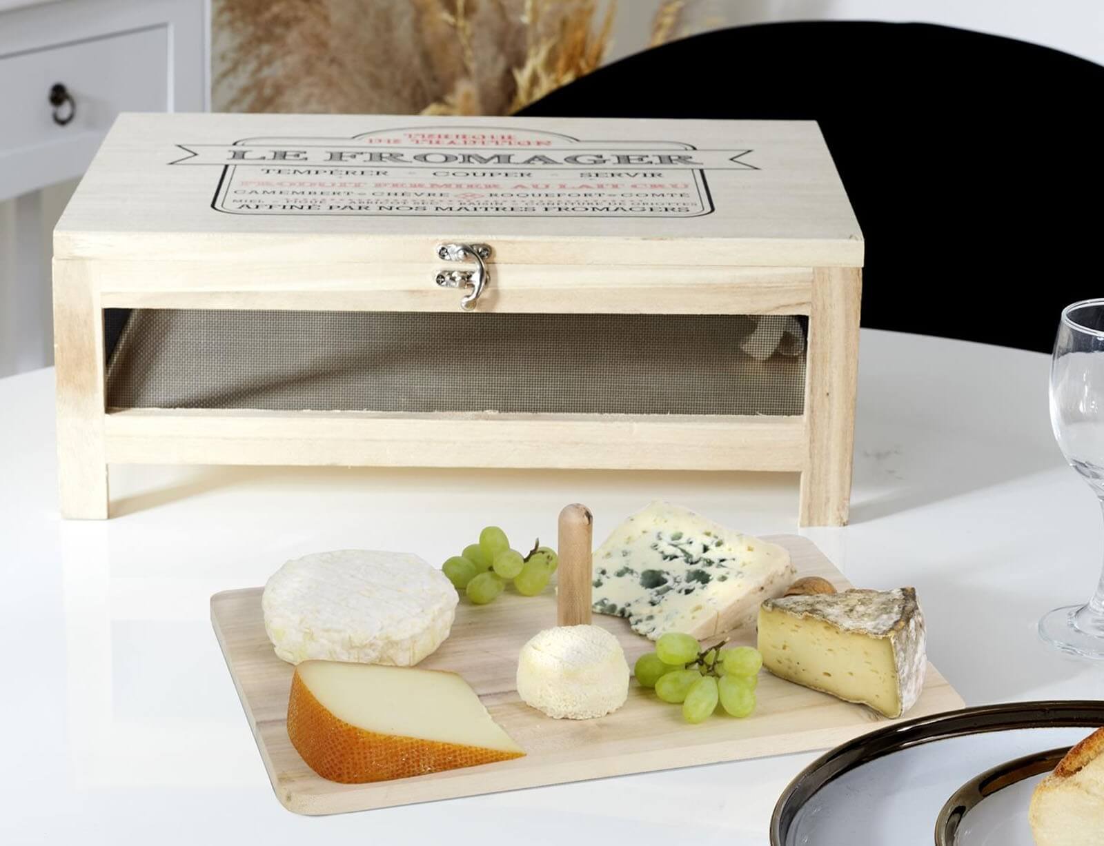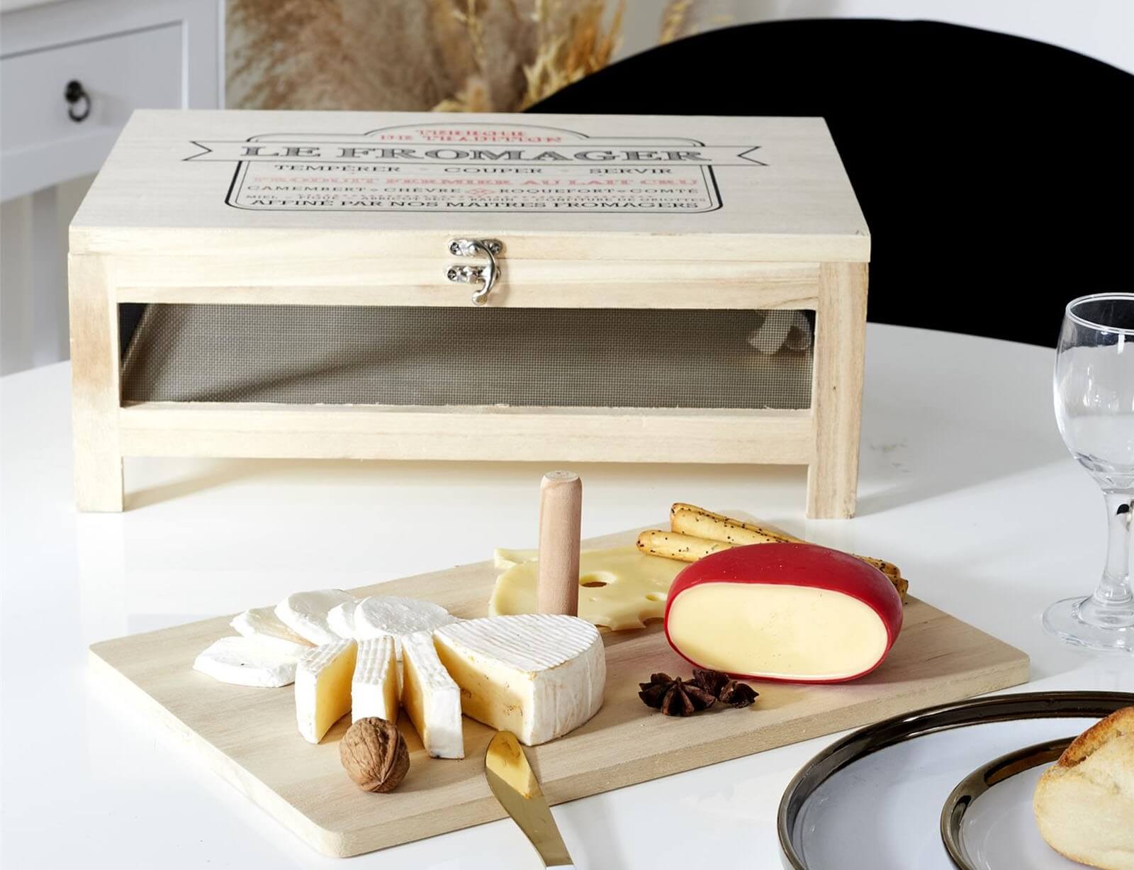 Είστε λάτρης των ώριμων τυριών; Αυτό το μεταφερόμενο κελάρι είναι για εσάς! Ο σχεδιασμός του από ελαφρύ ακατέργαστο ξύλο απεικονίζεται όμορφα σε ένα κομψό πνεύμα μπιστρό. Επωφεληθείτε από αυτή τη θήκη εξοπλισμένη με κούμπωμα και αποσπώμενο δίσκο για αποθήκευση και παρουσίαση των θαυμάτων σας. Τα τυριά θα μπορούν να συνεχίσουν να ωριμάζουν και να αναπτύσσουν τις γεύσεις τους!